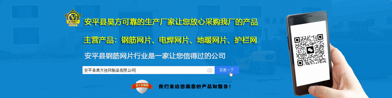 安平縣坤鼎絲網(wǎng)制品有限公司(原安平縣鑫平護(hù)欄網(wǎng)廠)位于安平縣油子開發(fā)區(qū),是專業(yè)生產(chǎn)各種公路護(hù)欄網(wǎng)、高速公路護(hù)欄網(wǎng)、小區(qū)護(hù)欄網(wǎng)、金屬焊接防盜網(wǎng)、鐵路隔離防護(hù)網(wǎng)、防眩網(wǎng)、防拋網(wǎng)、機(jī)場隔離網(wǎng)、圍網(wǎng)、圍欄網(wǎng)、場地圍網(wǎng)、體育圍網(wǎng)、運(yùn)動場圍網(wǎng)、小區(qū)圍網(wǎng)、生活區(qū)圍網(wǎng)、倉庫隔離網(wǎng)、圍山網(wǎng)、圍墻網(wǎng)、建筑用網(wǎng)的專業(yè)廠家。 本廠以“質(zhì)量求生存,客戶是上帝,交貨及時,價格合理,服務(wù)周到”的宗旨為廣大客戶服務(wù);本著“質(zhì)量求生存,信譽(yù)謀發(fā)展”的生產(chǎn)原則,贏得了廣大新老客戶的好評。多年來,我們憑借吸納進(jìn)的技術(shù)、過硬的質(zhì)量、良好的信譽(yù)和服務(wù)、與多家客商建立了穩(wěn)固的供貨關(guān)系,客戶遍及全國各地和地區(qū)。經(jīng)過多年的發(fā)展,我廠一貫堅(jiān)持以科學(xué)的管理和嚴(yán)格的檢驗(yàn)制度,確保防護(hù)網(wǎng)產(chǎn)品的合格率,并以可靠的信譽(yù)和服務(wù),贏得了新老客戶的信譽(yù)和贊譽(yù)。...